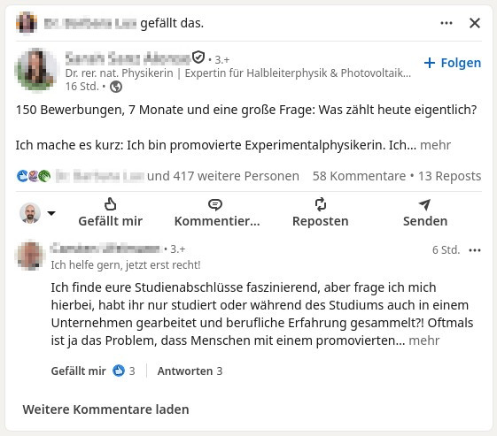 Wie schon bei x.com muss das auch hier nicht zwangsläufig auf eine explizite Benachteiligung von Links hindeuten, sondern könnte ein Nebeneffekt eines Algorithmus sein, der Aktivität auf der Plattform belohnt. Für kurze und prägnante Aussagen bekommt man sicher leichter ein Like oder einen Kommentar als für einen ausführlichen, verlinkten Artikel, der erst einmal gelesen und verstanden werden will. Und Beiträge mit mehr Likes und Kommentaren werden vom Algorithmus auch mehr Leuten angezeigt, was wiederum die Wahrscheinlichkeit für noch mehr Likes und Kommentare erhöht …